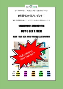クレデリオプラス フィラリア予防応援キャンペーンは10月15日をもって終了となります!購入をご検討の方はお早めにご来院ください!